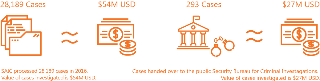The State Administration of Industry and Commerce (SAIC) conducts raids, seizes infringing goods and imposes fines on infringers. The process is swift and doesn’t require proof of damages, but the SAIC can’t issue injunctions or order infringers to compensate for damages.